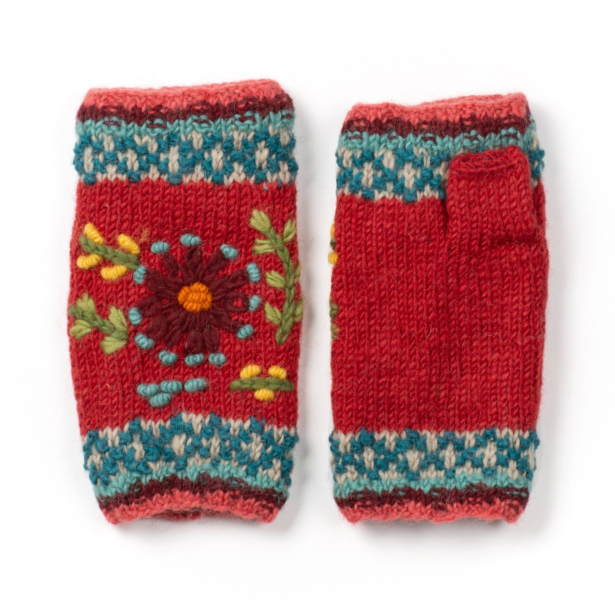 The Abigail Handwarmers bring warmth and charm to chilly days with their hand-embroidered floral design and cheerful Fair Isle borders. Made with 100% wool and crafted by hand in Nepal, they add a playful, handcrafted touch to any outfit. Pairs perfectly with the matching Abigail beanie, headband, and boot cuffs for a coordinated winter look.